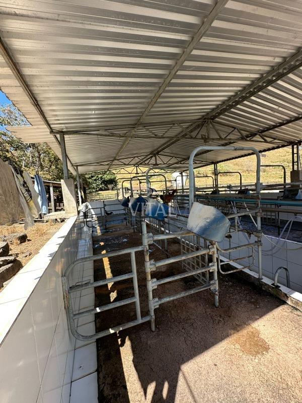 Curral com sistema de ordenha direto no tanque resfriador de leite, tronco de vacinação, brete e balança.